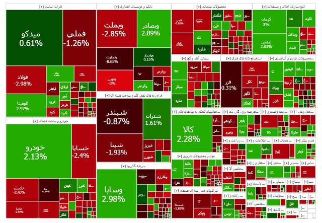 به گزارش ایسنا،فارس، فملی و فولاد بیشترین تاثیر منفی را بر شاخص بورس داشتند. از نمادهای پرتراکنش نیز میتوان به خودرو، خساپا و وبصادر اشاره کرد.