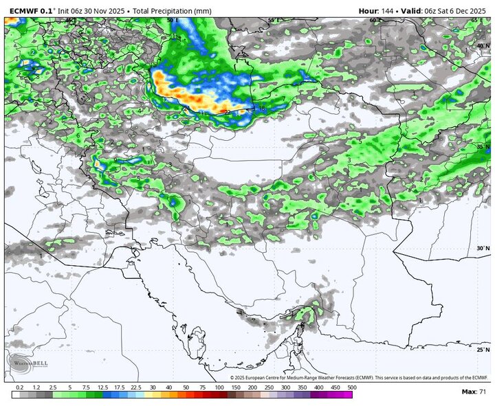 این کارشناس هواشناسی بیان کرد: در سواحل دریای خزر نیز از امشب تا ظهر پنجشنبه (۱۳ آذر)، بارش‌ها از غرب به شرق به تدریج سنگین می‌شود. بارش‌هایی در سطح کثیف کردن خودروها نیز در بخش‌هایی از استان‌هایی مانند سمنان، خراسان شمالی، خراسان رضوی و حتی جنوبی‌تر یعنی خراسان جنوبی مورد انتظار است و فردا (چهارشنبه، ۱۲ آذر) در برخی نقاط این استان‌ها احتمال رگبارهای قابل توجه وجود دارد.