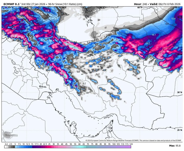 وی افزود: روز دوشنبه (۲۰ بهمن) در شمال غرب، غرب، ارتفاعات و دامنههای البرز، استانهای ساحلی دریای خزر، شمال شرق و شرق کشور بارش پیشبینی میشود و این شرایط جوی روز سهشنبه (۲۱ بهمن) در شمال غرب، استانهای ساحلی دریای خزر، ارتفاعات البرز مرکزی و شمال شرق ادامه خواهد داشت.