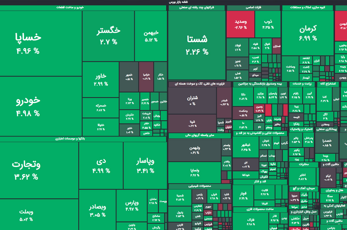 بازار امروز سهام شاهد ۴۱۲ نماد مثبت برابر ۳۳۲ نماد منفی بود. ۱۲۸ صف خرید مقابل ۴۴ صف فروش تشکیل شد. خالص ورود و خرج پول حقیقی هم امروز به ۷ میلیارد تومان رسید.